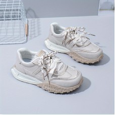 レディース チャンキープラットフォームダッドスニーカー - ベージュ&ホワイト 高さアップカジュアルシューズ、アルミトゥキャップ付き、通気性メッシュアッパー、ランニング用クッションゴムソール、ストリートウェア&日常快適、モダンフットウェア | 耐久性のあるトラクションミズジ
