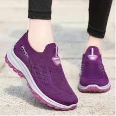女性用の通気性のあるニット製プラットフォームスニーカー、カジュアルな屋外用スリップオンシューズ、快適なロートップスポーツシューズ