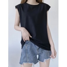 ブラック Vネック ノースリーブトップス レディース 夏の新作 ゆったりと若々しい フレンチドールシャツ カジュアルでシンプル アウトドアウェアに最適